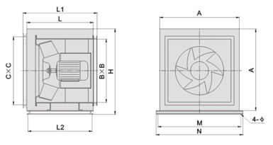 | 二、HLF型風機外形尺寸(單位:mm) |